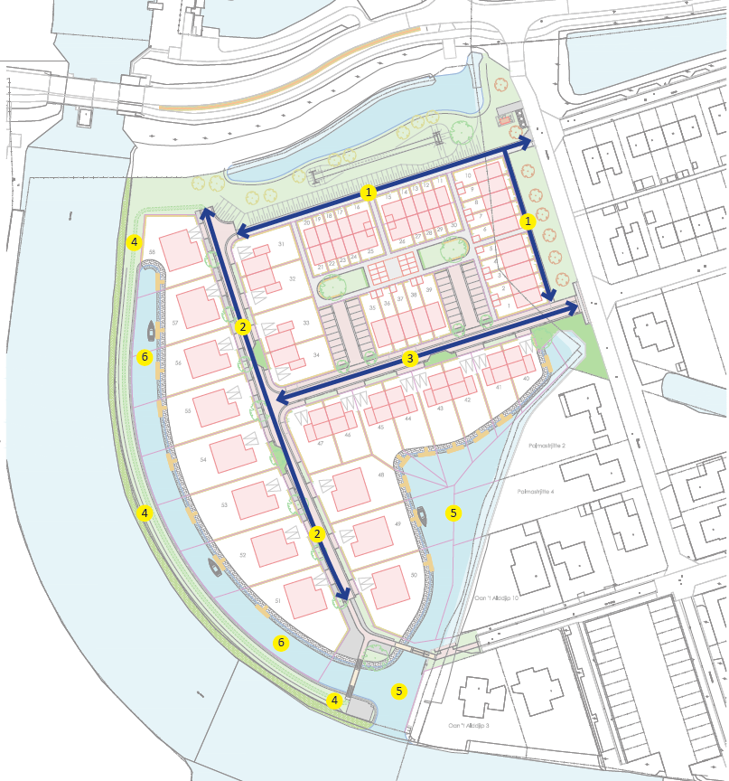 Binnen Grut Palma West krijgen de straten en watergebonden routes de volgende namen: