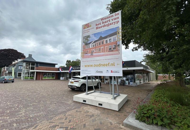 Je kunt er niet omheen… ons bouwbord staat er! Voorbijgangers hebben het vast al gezien: het bouwbord is geplaatst. Een letterlijk en figuurlijk zichtbare mijlpaal op het voormalige terrein van Meubelcentrum Neef. Het voormalig meubelcentrum maakt plaats voor 13 karaktervolle koopwoningen, waaronder 11 geschakelde woningen en 2 half vrijstaande woningen. Benieuwd naar wat hier gaat komen? Schrijf je dan in op onze projectwebsite en blijf automatisch op de hoogte van alle ontwikkelingen, belangrijke data én de start van de verkoop!