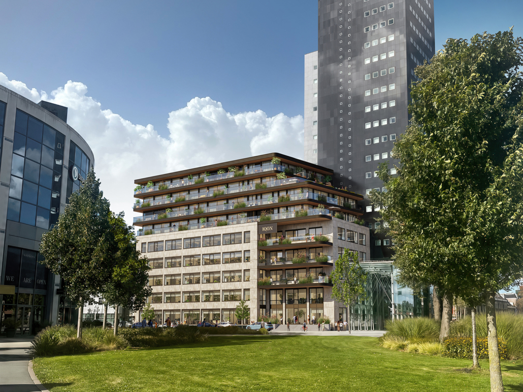 Eén van onze jongste projecten.. direct grenzend aan de historische Leeuwarder binnenstad, pal naast de bijna 115 meter hoge Achmeatoren, transformeert een bestaand gebouw zich tot een iconische oase met 20 luxe koopappartementen en 3.400 m2 aan bedrijfsruimte (huur).